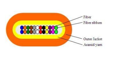 Kabel optik pita datar 4-24 inti yang menampilkan φ250μm serat warna sebagai media komunikasi optik. Serat warna dibungkus dalam lapisan benang aramida sebagai unit penguatan kekuatan,yang dilapisi dengan polyvinyl chloride (PVC) atau low-smoke halogen-free material (LSZH) jaket.